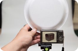 Most cameras have built-in flashes, but they are small and often put out very harsh unflattering light. With a simple household item in front of the flash, it turns that into a beautiful soft light. We recommend an empty milk container, but experiment with different items as well. Use a foam plate in front of a flash and see what kind of effect you get or simply just take a postcard sized piece of white card-stock and put it in front of the flash, aiming it to a white ceiling. With a camera phone, use a floor lamp before considering the built-in flash on it. All sorts of items create different lighting effects so explore if you have the time.