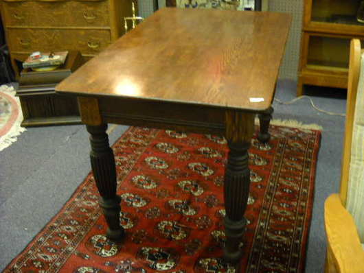 The next two tables, an antique from UsedRegina, and a spindle-legged beauty found on UsedCalgary could both be fabulous islands if you added a new solid top – perhaps a stone (like the marble in the picture below), or stainless steel.
