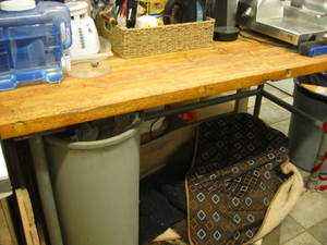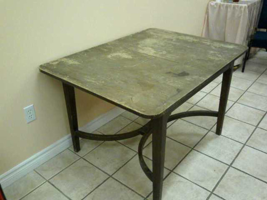 But random junk and clutter aside, I think this workbench table on UsedCalgary has awesome potential to be an industrial style island like one of these: