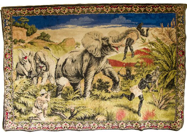 I wanted to go to Africa to see elephants in the wild, but after finding this tapestry, I’m not so sure. I thought elephants just ate peanuts…They don’t do this in real life, do they?